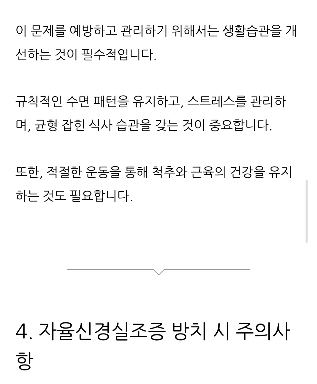 각 환자의 상태를 신중히 파악하여, 신경주사와 같은 학문적이고 임상적인 접근법을 결합하여 필요한 치료를 구상합니다. 첨단 기기들의 활용과 더불어 개인에 따른 맞춤형 도수치료는 더 이상 선택이 아닌 필수입니다. 이러한 진료의 정밀함이 더해질 때, 비로소 대구자율신경실조증의 복합적인 증상을 극복할 수 있습니다. 이처럼 대구자율신경실조증의 개선을 위한 개인별 치료 계획은 장기적인 통증 완화와 재발 방지를 목표로 하고 있습니다.